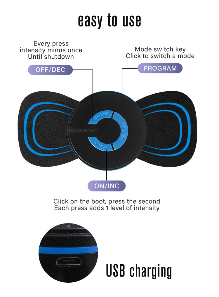 استمتع بالراحة والاسترخاء مع جهاز التدليك الكهربائي الصغير والمحمول، المصمم خصيصًا لتخفيف آلام الرقبة، الظهر، الكتف، والعضلات المختلفة. حجمه المدمج يجعله مثاليًا للاستخدام في المنزل أو أثناء السفر.