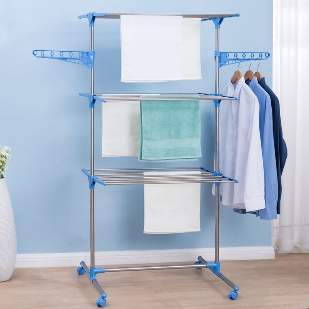 "رف تجفيف الملابس العملي لتجفيف ملابسك بسهولة وراحة في المنزل. تصميم قابل للطي لتوفير المساحة، مصنوع من مواد قوية ومتينة في متجر عمان